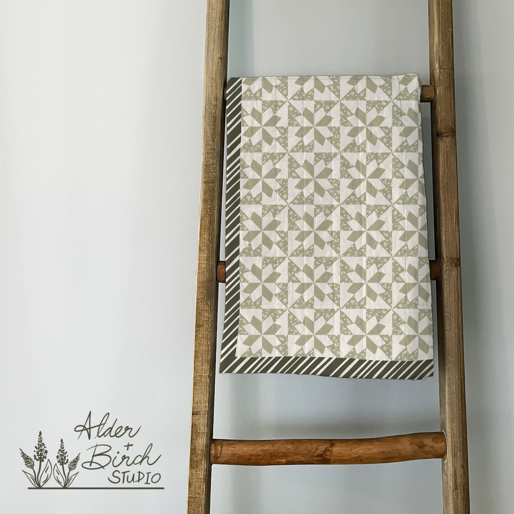 This three-pattern mini collection draws inspiration from traditional hand-crafted antique patchwork quilts, featuring hand-drawn leaves, a classic star block, and a charming striped binding. Minimalist yet timeless, it’s the perfect touch for farmhouse-style home décor and cozy living spaces.