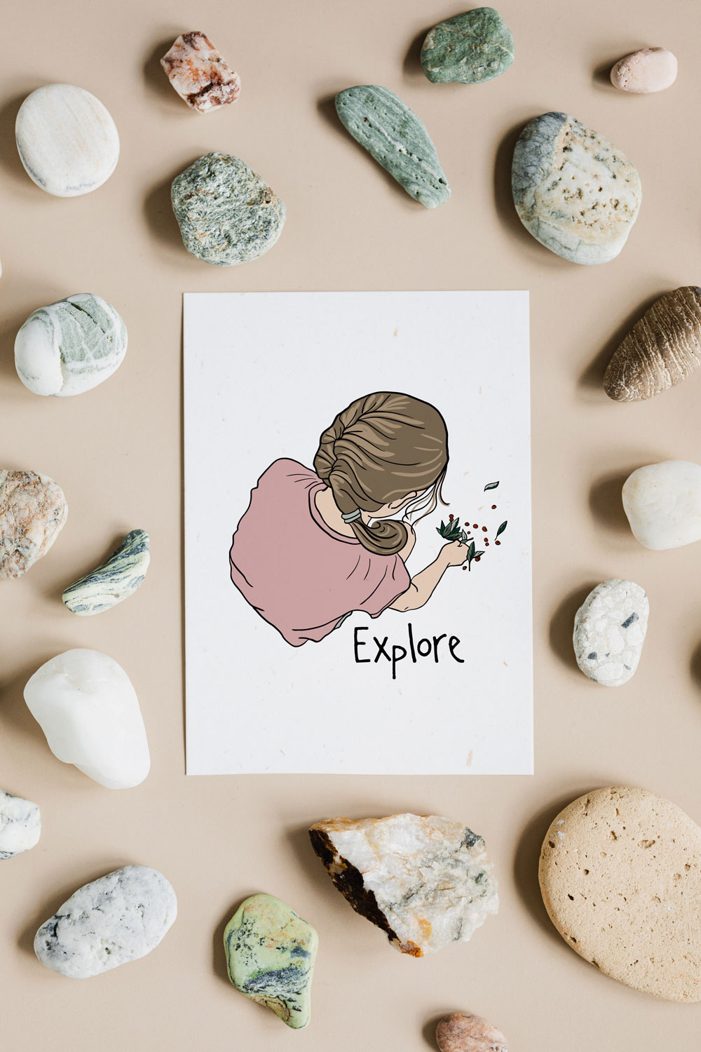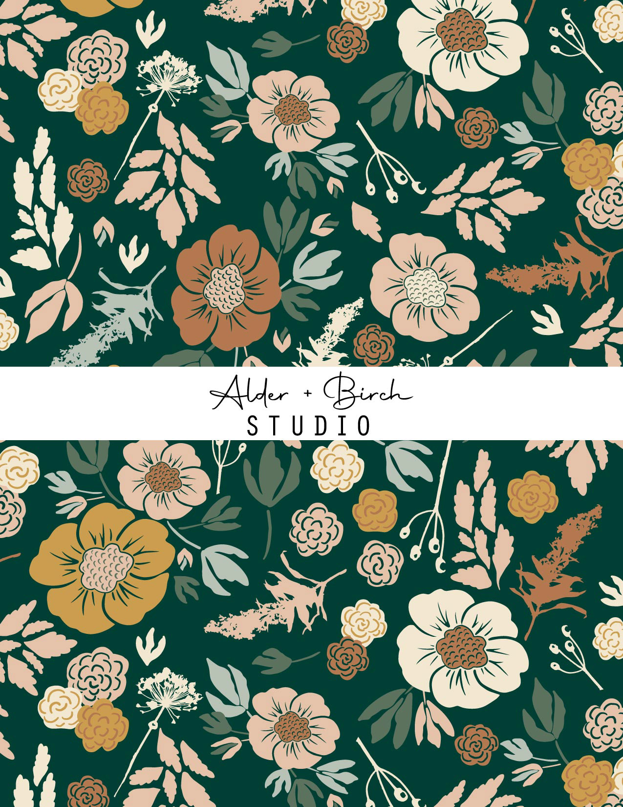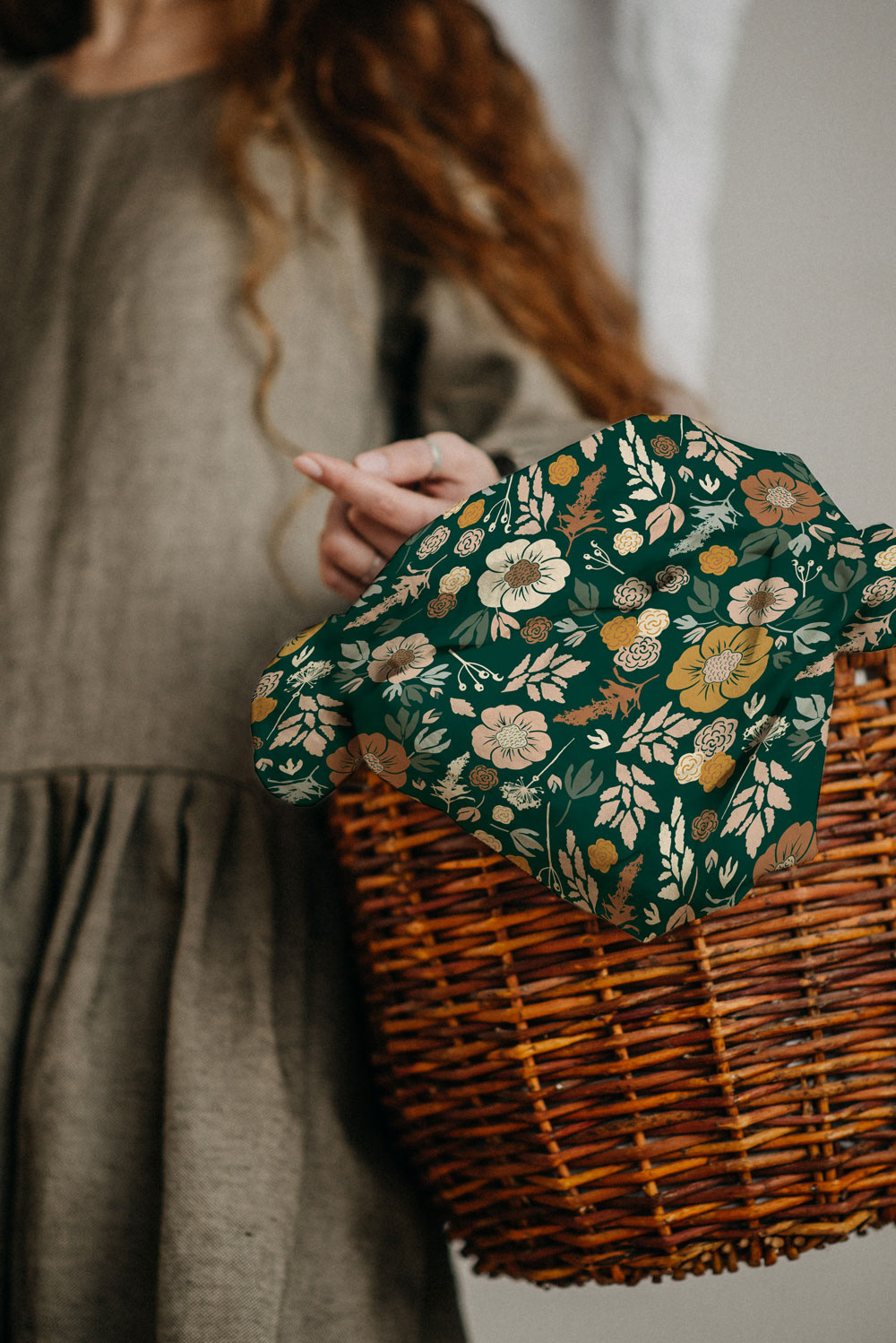 The North Trail Collection was dreamt up over our family’s first summer camping in the eastern campsites of Newfoundland, Canada. We spent those first few trips exploring campsites and park trails. We also spent much of that time learning the ins and outs of camplife! This collection uses foraged plants, illustrations and abstract linework to capture the feelings and memories from that trip. I spent my days foraging for pretty plants, leaves, twigs and flowers that would one day come to life in my patterns. My youngest daughter spent her days foraging leaves and berries for her mud cakes. This special moment is represented in the accompanying illustration of her. I wanted to BRING HOME those feelings of being in a deep forested path and listening to the sounds of nature. The North Trail Collection has done just that!